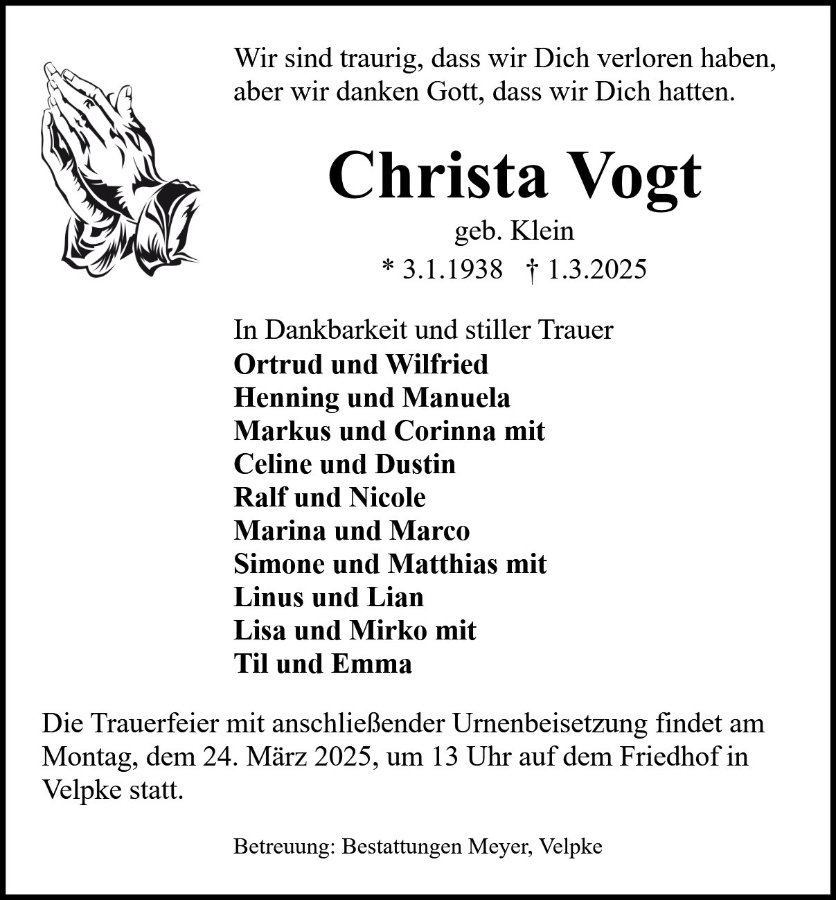 Christa Vogtgestorben am 1. März 2025
